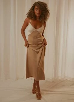 Budget ⌛ Peppermayo Exclusive – Kamala Contrast Maxi 👗 Dress – Champagne And Ivory ✔️