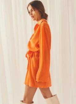 Best deal ๐งจ Peppermayo Exclusive – Soho Chic ๐ Shirt Plisse ๐ Dress – Tangerine โญ