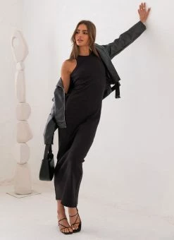 Buy ๐ฅฐ Peppermayo Exclusive – Tonal Tour Organic Cotton Rib Maxi ๐ Dress – Black โค๏ธ
