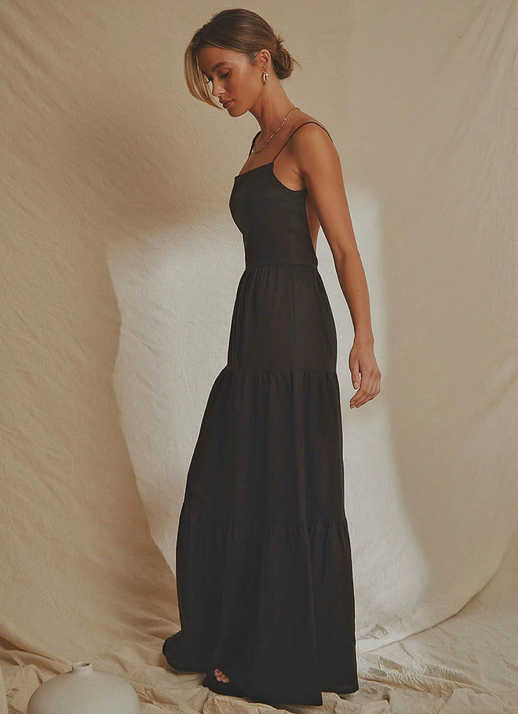 We are obsessing over the Havana Linen Maxi Dress. Featuring a gorgeous low scooped back and full tiered skirt, this dress will be a chic new addition to your weekend wardrobe rotation. Perfect for sunset drinks at your fave beachside bar. Pair with strappy mules and vintage inspired gold jewellery.