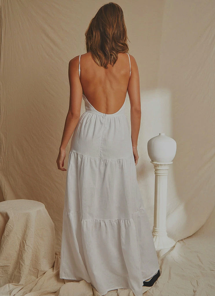 We are obsessing over the Havana Linen Maxi Dress. Featuring a gorgeous low scooped back and full tiered skirt, this dress will be a chic new addition to your weekend wardrobe rotation. Perfect for sunset drinks at your fave beachside bar. Pair with strappy mules and vintage inspired gold jewellery.