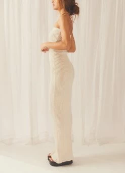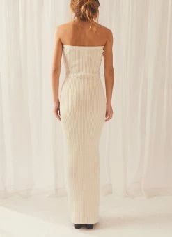 The only silhouette you’d ever want! The Angels Silhouette Rib Knit Tube Maxi Dress is a slinky strapless maxi dress crafted in a neutral oatmeal coloured ribbed knit. Versatile and sexy, we love it for an everyday look styled with sneakers and jacket or dress her up with heels and a statement earring.