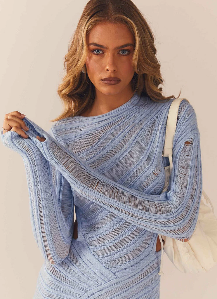 Angel energy! The Angels Wing Dress is ladder knit mini dress with long sleeves and cut out detailing at the sides. Designed to be a bodycon fit, this sheer little number is guaranteed to have you turning heads.