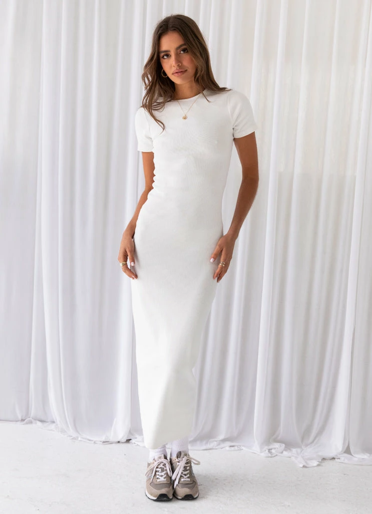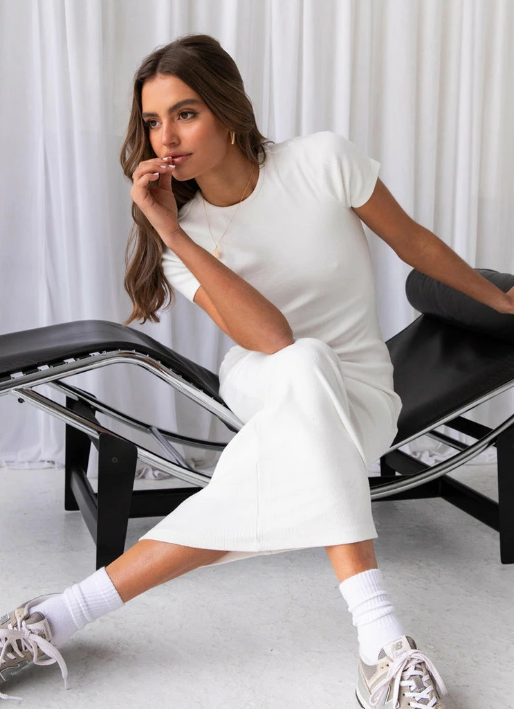 Effortlessly cool in the Being Organic Cotton Rib Tee Maxi Dress. Made for the everyday it girl, this bodycon maxi dress has been crafted in premium thick ribbed organic cotton with t-shirt sleeve styled with a simple round neck.