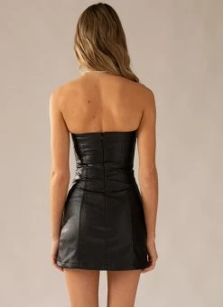 Our Brooklyn Baby Tube PU Mini Dress is your new party favourite! A slinky strapless style that’s fitted through the body with top stitch detailing throughout. Layered perfectly with the There She Goes PU Blazer.