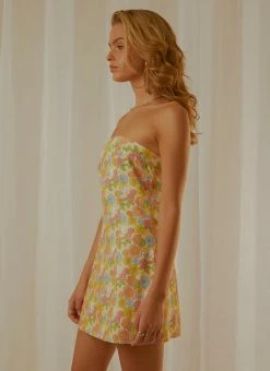 Our Champagne and Flowers Mini Dress is your new favourite party dress. With a shape inspired by our best-selling Petit Fleur mini dress, in a new, exclusive retro inspired print. We love this paired with an oversized shirt, platform mules, and vintage inspired accessories.