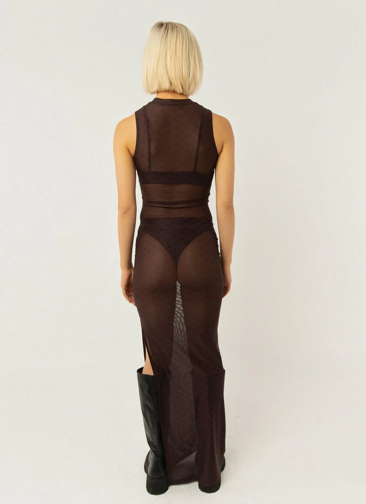 Festival fit sorted! The Cool To Be Kind Mesh Dress is sleeveless crewneck style crafted in soft sheer mesh designed to hug the body. We love it layered over black swimwear with boots.