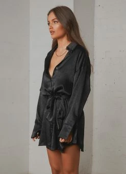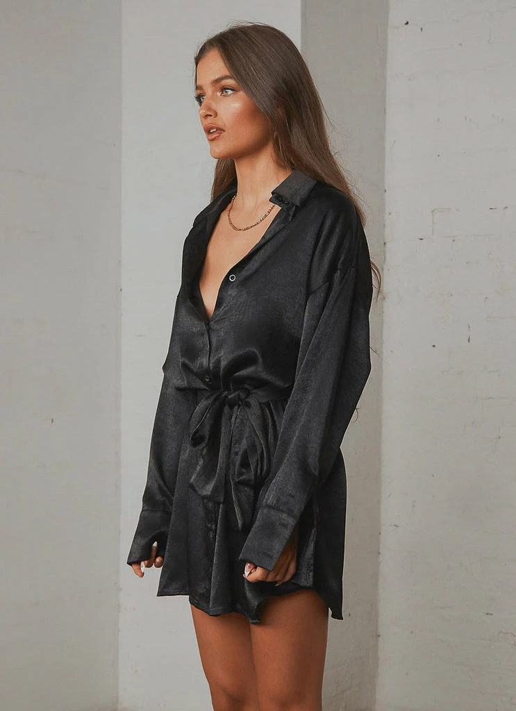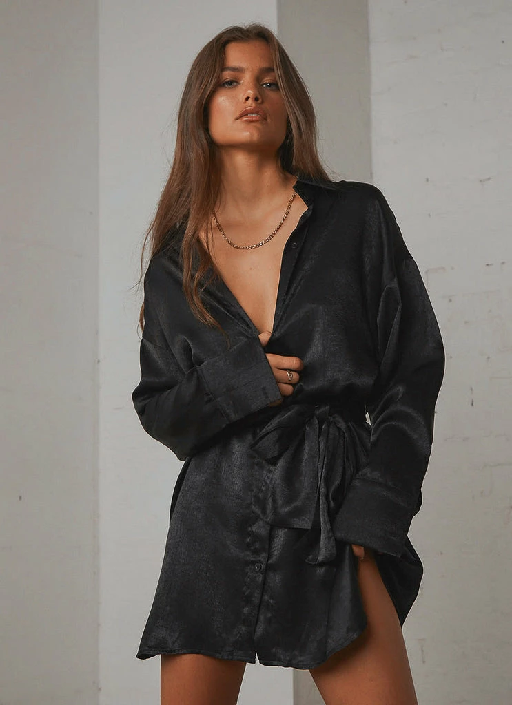 Chase the night in our Faye Mini Shirt Dress. this silky little number is as easy and versatile to wear as it is stylish and chic- hello new wardrobe staple! Easily dressed up with heels and gold jewellery or dressed down with a crisp white sneaker.