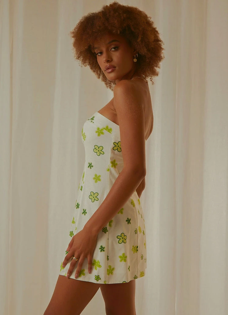 Our Harriette Tube Mini Dress is your new favourite party dress. With a shape inspired by our best-selling Petit Fleur mini dress, in a super cute exclsuive new print and luxe linen fabric. We love this paired with platform mules, and vintage inspired accessories.
