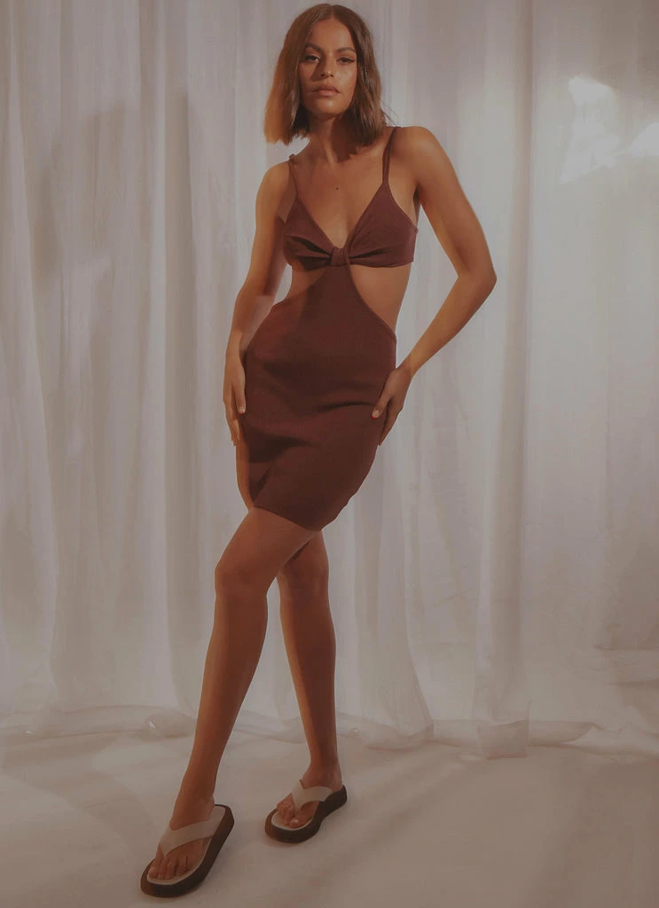 Cut-outs are so on trend right now, the Iman Knit Mini dress is set to become your next obsession. In a super cute Choc brown colour way, you’ll be at the top of every best dressed list. We love this paired with heeled mules and your fave mini bag for your next cocktail event or long lunch with the girls.