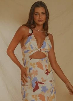 Your next summer vacay is calling and we’ve got the perf dress for it! The Holiday Sun Maxi Dress features a soft abstract print and cut out styling under the bust with elasticised ruched straps that cross between the shoulder blades. Add a statement earring and your fave heels for cocktail o’clock!