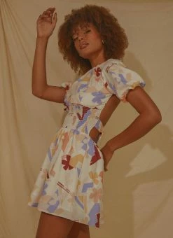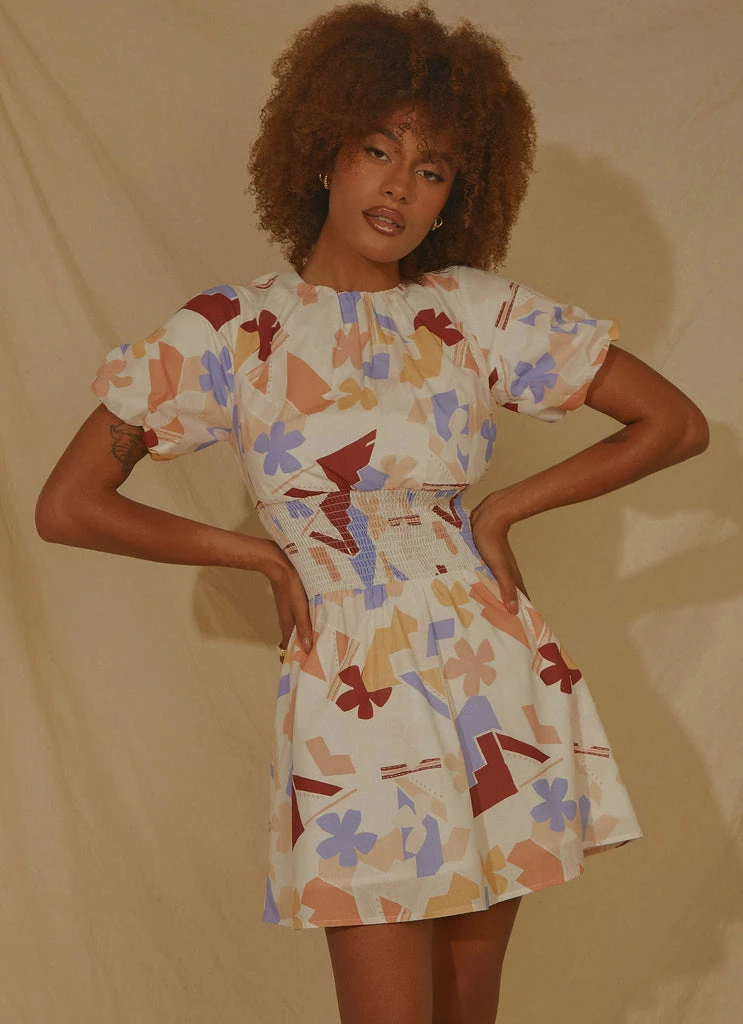 See you at cocktail o’clock! The Lani Linen Mini Dress has a soft abstract print and feminine balloon sleeves with a slinky open back. Perfect for date night or drinks with the gals. We love it styled with a simple earring and strappy heel.
