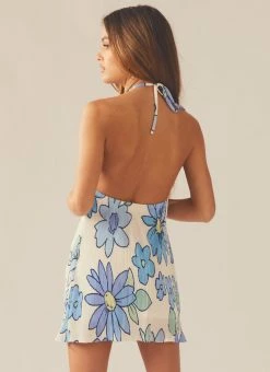 Girl, you’re a show stopper! The Love From Europe Halter Dress has been crafted in plisse fabric in our exclusive Blue Blossom print. This cute ‘lil mini has a sexy low back and high neckline with halterneck closure. Easily styled with your favourite mules or heels.