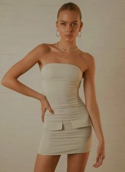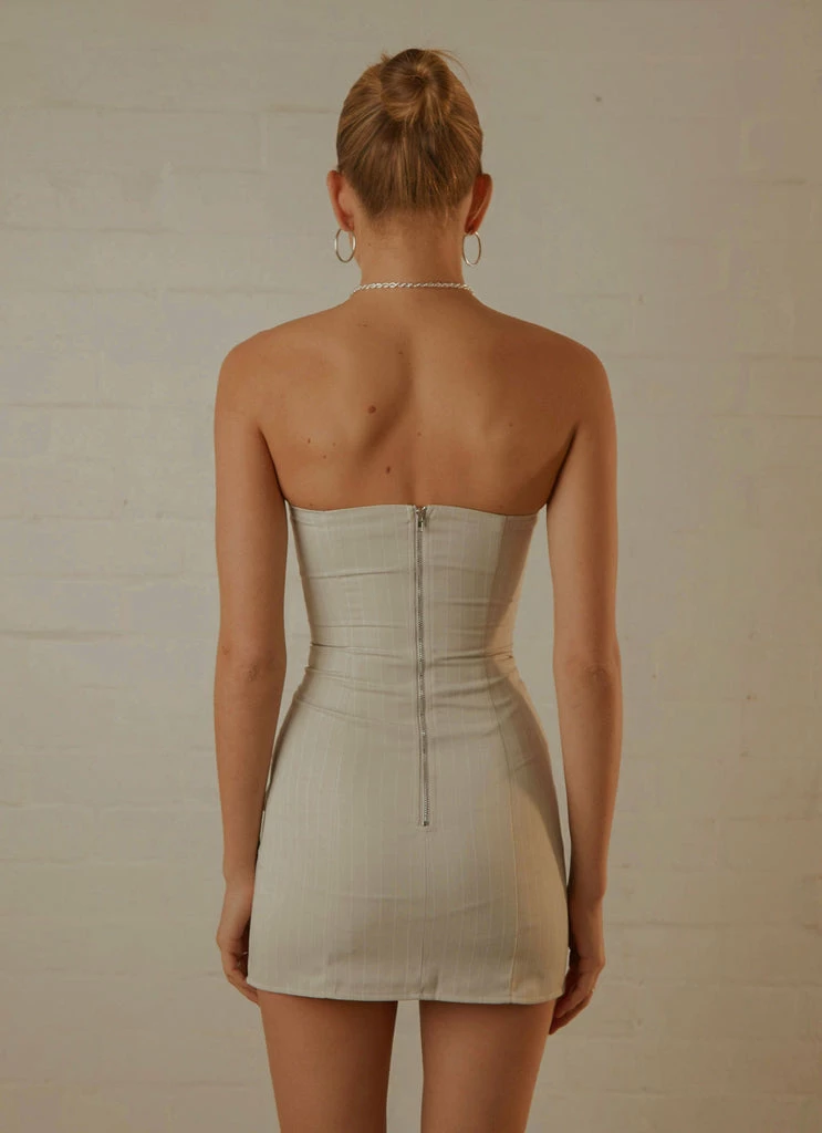 Worth making plans for! The Mia Tube Dress in our soft Stone Pinstripe pattern is your new go-to! A slinky strapless style with faux pocket designs at the front. You’ll be sure to turn some heads in this lil number!