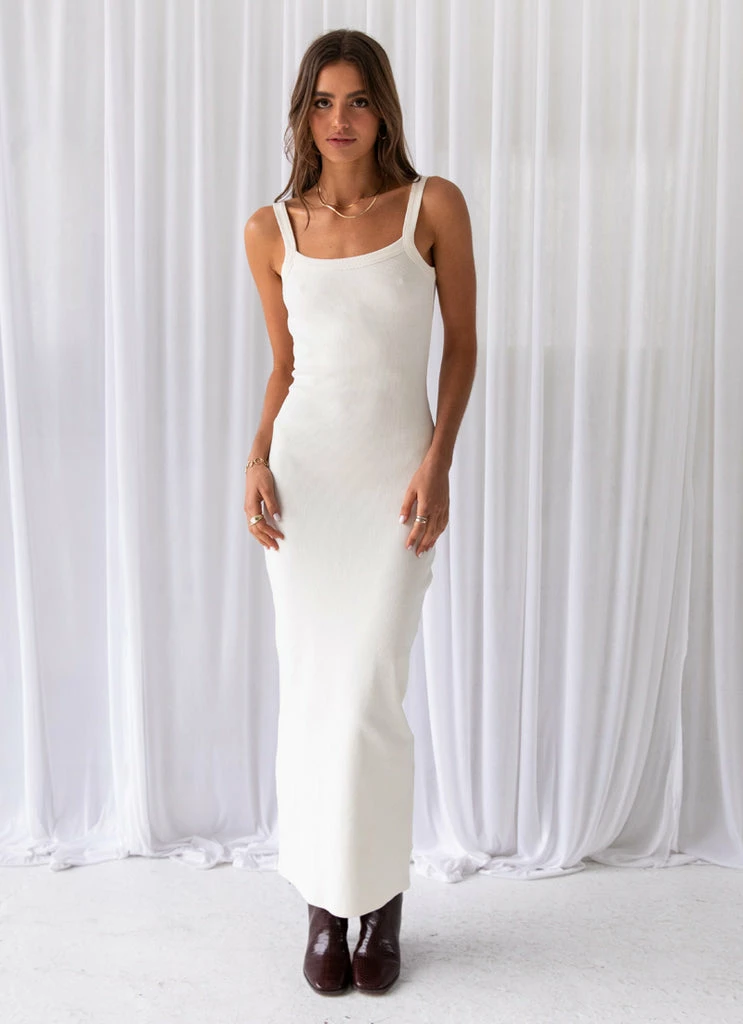 The staple piece your wardrobe needs! The Necessity Organic Cotton Rib Maxi Dress is a slinky bodycon fit with open back detailing and thick ribbed binding throughout. The ultimate transeasonal piece, we love it layered with a denim jacket and styled with your favourite mules and chunky gold jewellery.