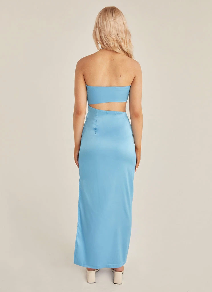 This silky little number is about the become your party go-to! The Melody Maxi Dress is a strapless style with an asymmetrical cut out under the bust and simple split at the bottom left leg. Complete the look with simple jewellery and your fave strappy heels.