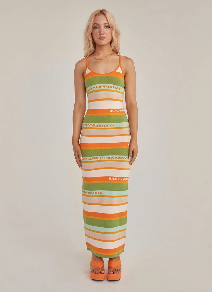 What could be cuter than a lil sunset drive? The Sunset Drives Knit Maxi Dress has that covered! A soft knit in our eye catching Riley x Peppermayo Sunset Drive print. The ultimate summer palette! Keep it simple and style her back with elegant gold jewellery and a fun block coloured shoe.