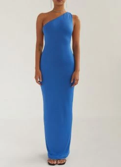 Totally sexy in the Touch Of Silk Maxi Dress. This slinky maxi dress features one shoulder detailing with a low back. Smoulder at your next event in this cobalt blue hue styled back with gold jewellery.