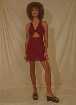 Best Pirce ๐ Peppermayo Exclusive – Rosemarie Linen Mini ๐ Dress – Burgundy ๐คฉ